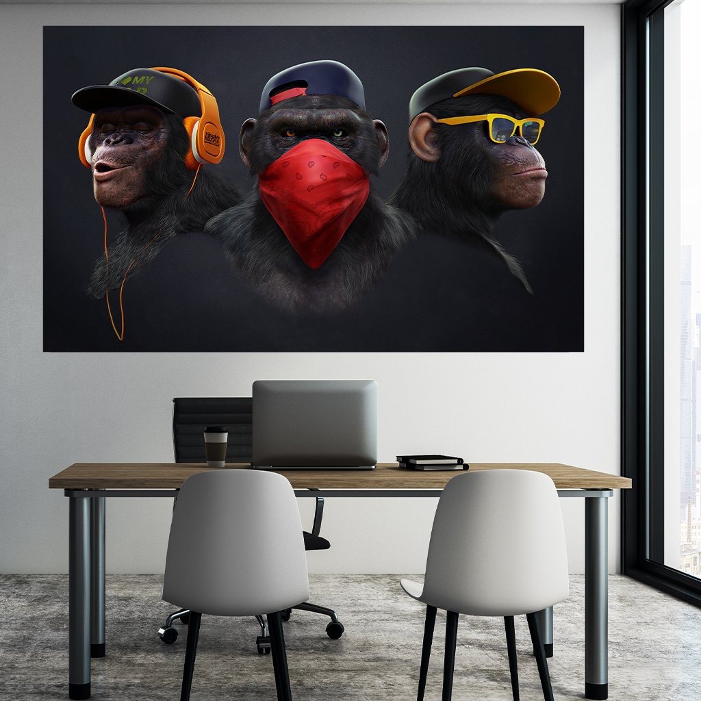 Exclusive monkey pictures by our Brazilian 3D artist Juliano de Araujo can only be found with us. With his well-known work of art "Affengeil" he has managed to create a worldwide bestseller. "Affengeil" was created from a new interpretation of the Japanese proverb about the 3 wise monkeys, but with a more modern street art style. Stay tuned for more cool 3D works from the Brazilian artist!