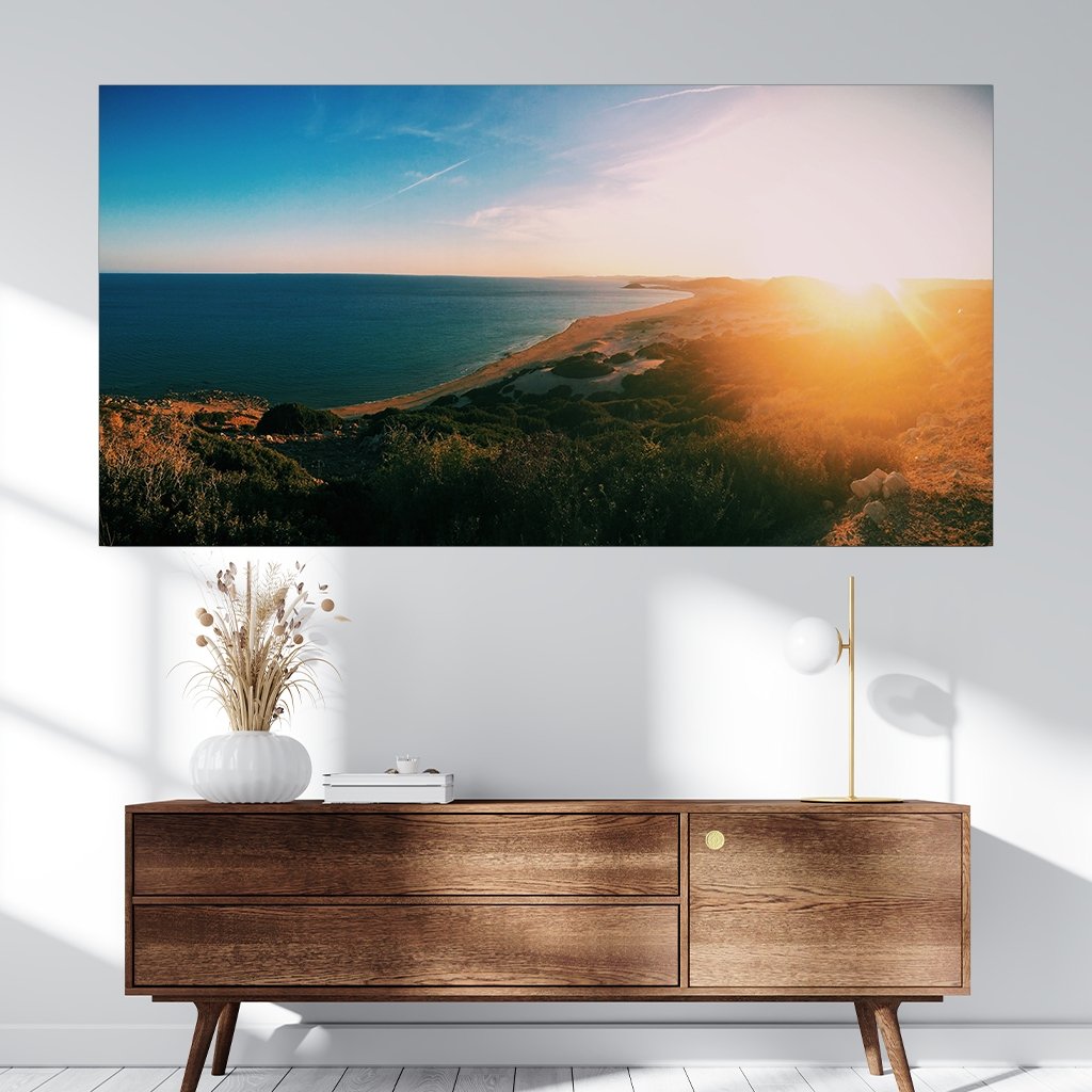 We have romantic photos of sunsets, whether by the sea or in the forest. A canvas with a sunset in the bedroom invites you to have beautiful holiday dreams . Wonderful how the sun shines through the canopy of leaves in the forest, as impressive as the sun sets over the sea. Buy wall pictures online with sunsets that are perfect for the kitchen, living room, practice or hobby room.