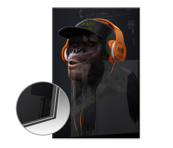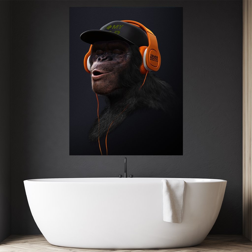 On the motif you will find a chimpanzee (monkey) with a baseball cap and orange headphones. It means "hear nothing".