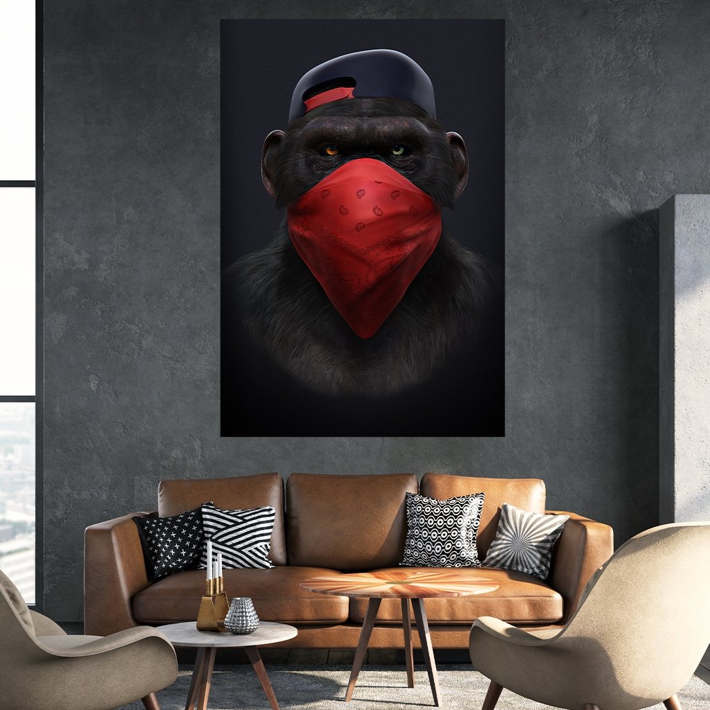 You can also purchase the "Affengeil Tuch" motif from our bestseller "Affengeil" as a single image. On the motif you will find a chimpanzee (monkey) with a baseball cap and a red scarf. It means "don't say anything".