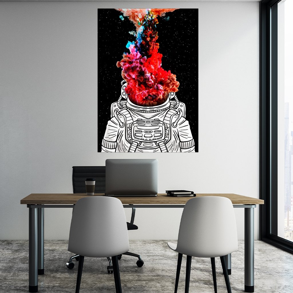 Our extraordinary astronaut as a black and white contour drawing with the colorful, thick smoke rising from his suit is a varied eye-catcher and perfect for your wall in the living room, bedroom, hallway or office.
