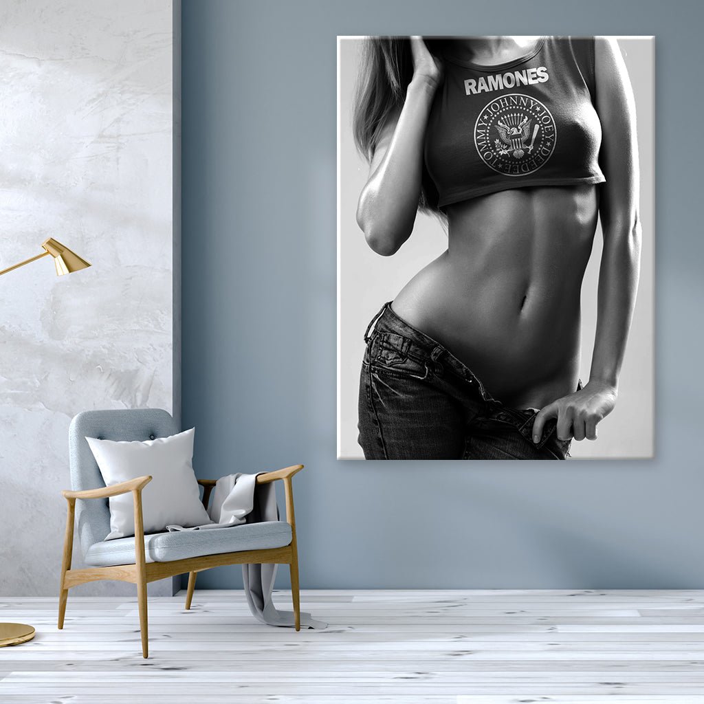 How about our lady in a skimpy Ramones outfit? She's sure to be an eye-catcher for your living room, hallway, or bedroom walls.