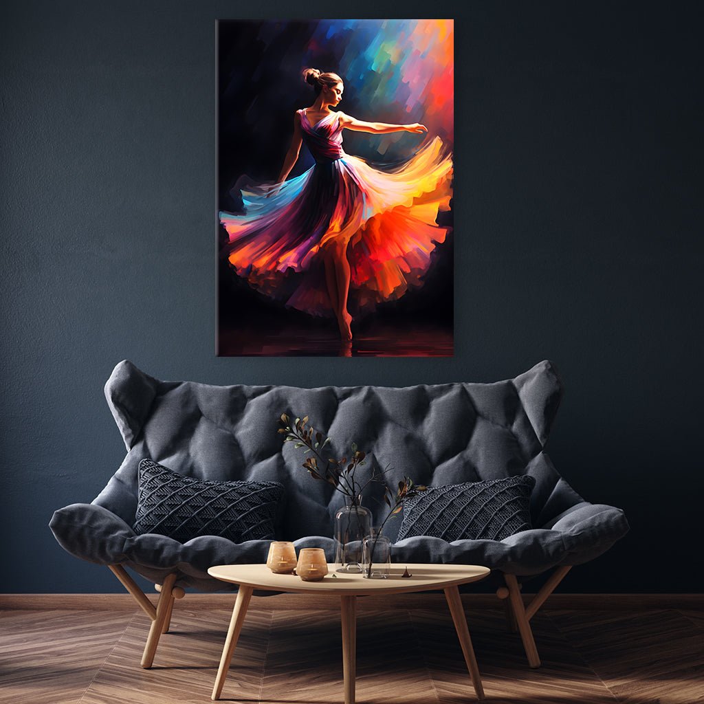 A delicate ballerina in a beautiful colorful tulle dress, painted in an expressive acrylic style. Her grace and elegance merge with the vibrant colors on the canvas, bringing the magic of dance to life. A special eye-catcher for your picture wall in the living room, bedroom or entrance area.