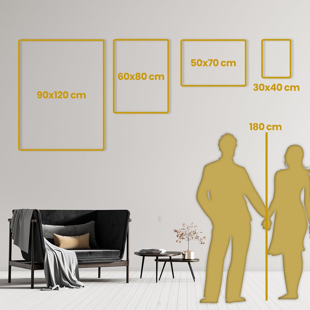 Whether rectangular small formats in 40x80cm, 30x20cm, 40x60cm or large formats in 80x120cm, 100x200cm or 150x100cm, as well as square formats in 60x60cm, 120x120cm or panoramic formats up to 40x120cm, the right format from small to XXL is available in our shop for every space on your wall. So that your awesome dream motif will stand out in every spot in your living room, bedroom, hallway or office.