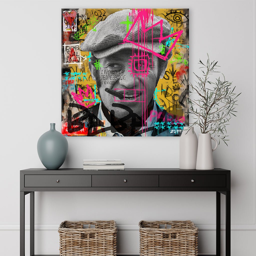 The square motif was designed by our artist Zuppini. Zuppini is an artist renowned for his skill. His style is unmistakable—he takes iconic images of public figures and transforms them, translating them into a new visual language that is both captivating and fresh.
