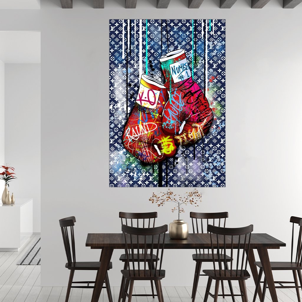These red boxing gloves with the inscription "Number #1" are a real eye-catcher. In the graffiti style on a Louis Vuitton background and gradient color, it looks different than other motifs with boxing gloves on it.