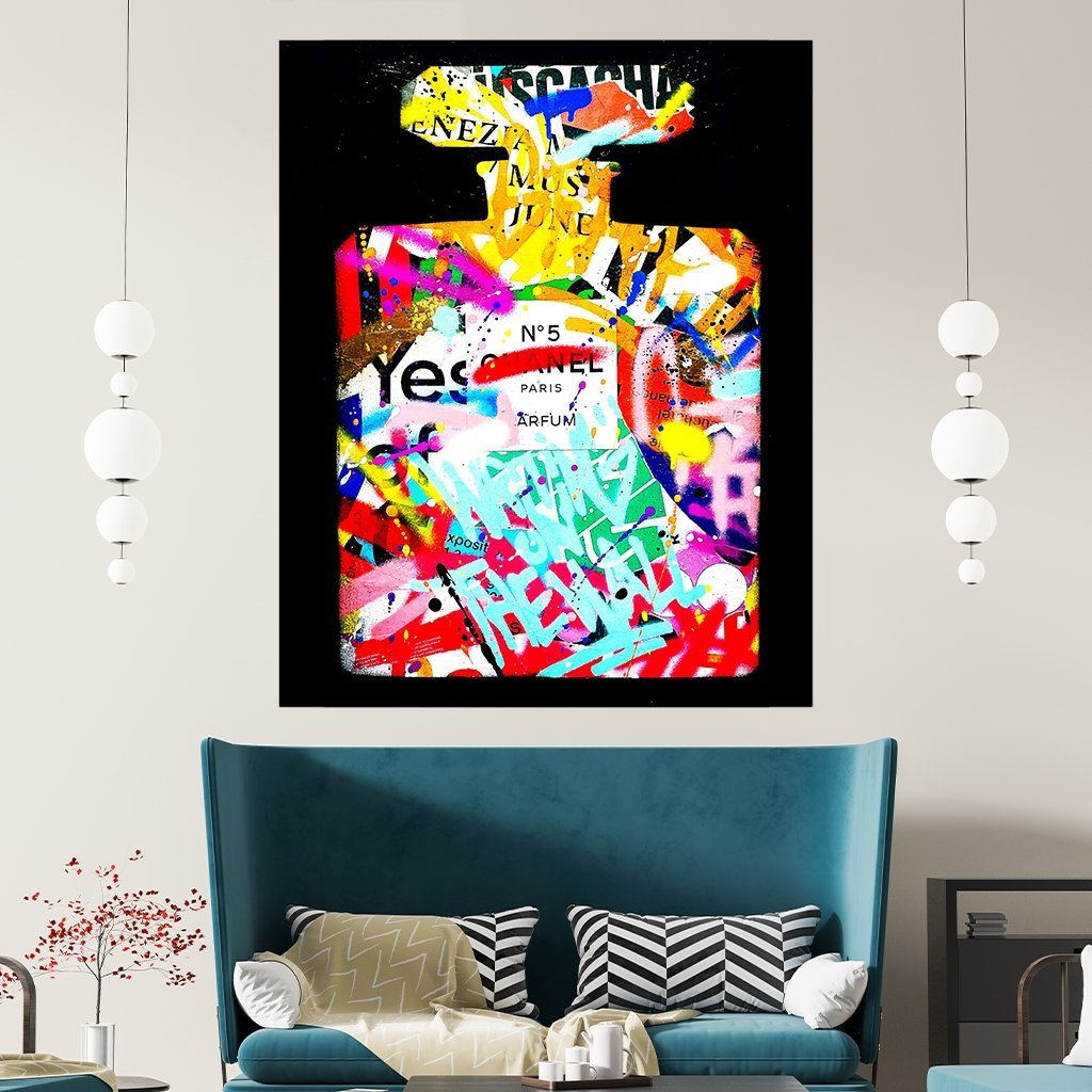 This portrait Pop Art motif was designed by our French artist RS Artist. RS Artist belongs to this new generation of artists who combine both Pop Art and Street Art, delivering works in full color, a clever blend of performance, power, and life. What is the artist trying to tell us other than that we must enjoy, live, and try.