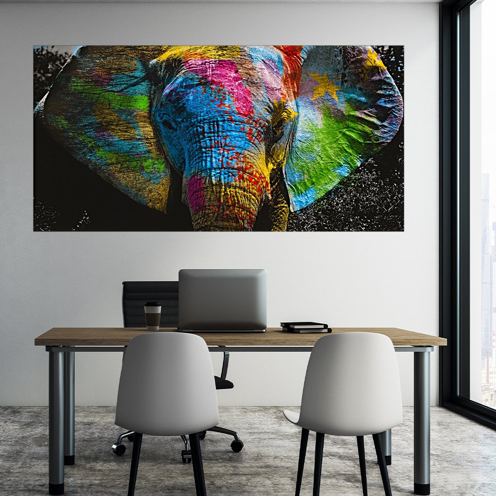 Our elephant is a real bestseller. With its colorful graffiti colors in green, blue, yellow, red, pink, it turns your rooms into an eye-catcher. Suitable for the hallway or bedroom.