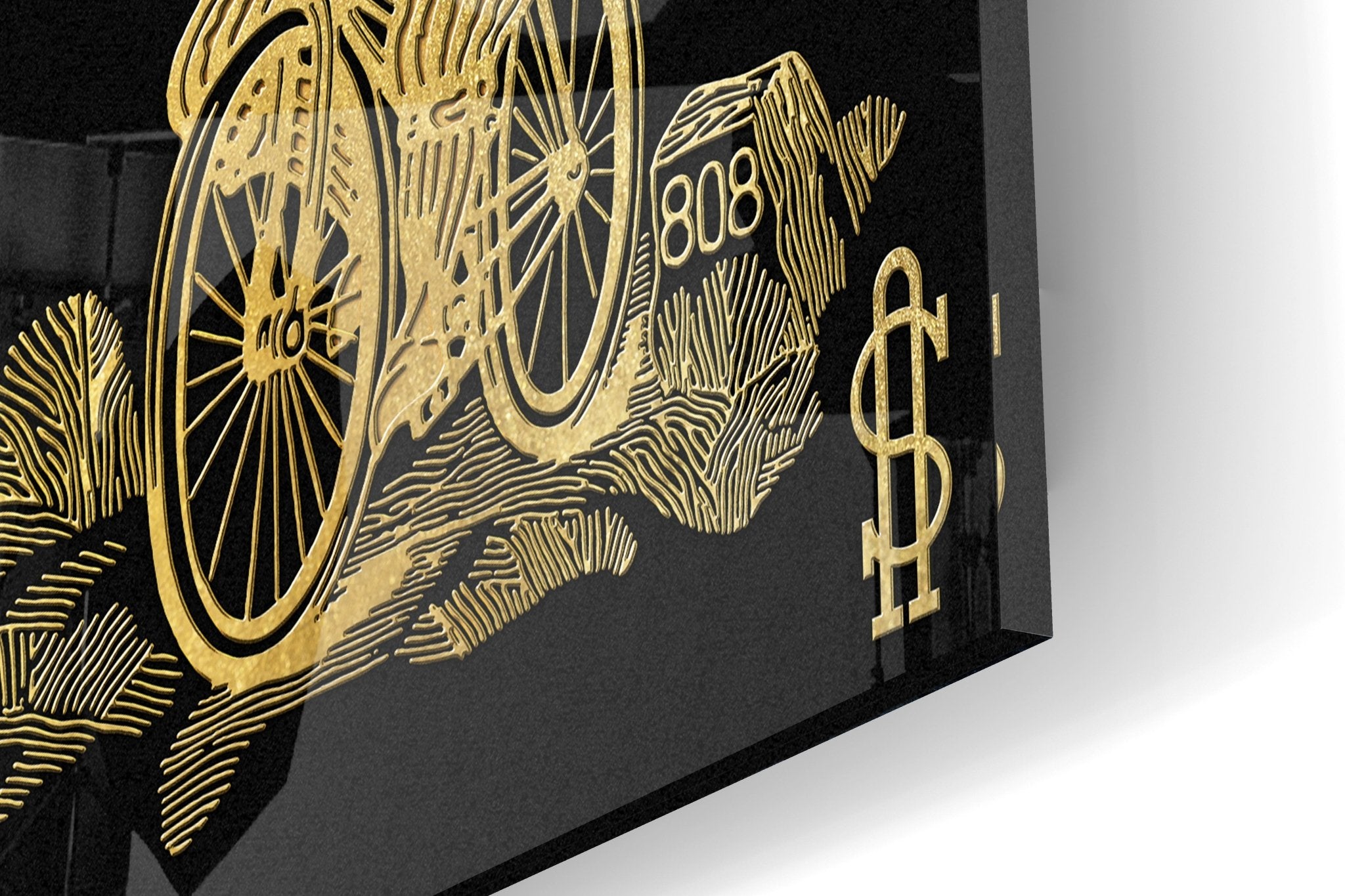 The artwork "Joker by Frank Amoruso Gold version on acrylic" is an impressive and unusual motif. The Joker, one of the most versatile characters from the card game, is depicted here on a bicycle.