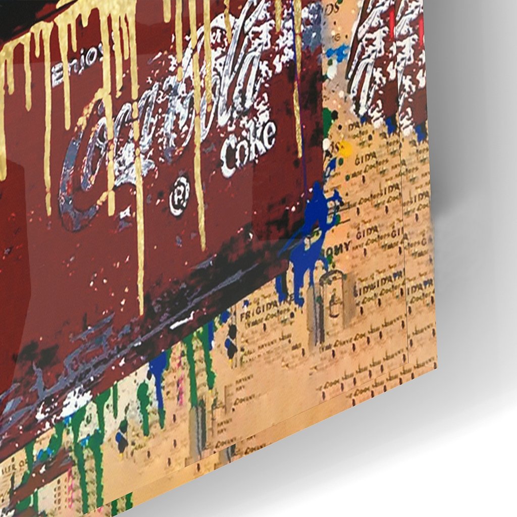 The motif "Follow Your Dreams" by Banksy is an impressive and inspiring depiction of the well-known graffiti artist. It shows a monkey sitting on a red Coca Cola crate and holding a spray bottle in his hand. In the background is a colorful graffiti wall, which underlines the rebellious and unconventional nature of Banksy. The lettering "Follow Your Dreams" is made in gold and gives the image additional meaning and significance.