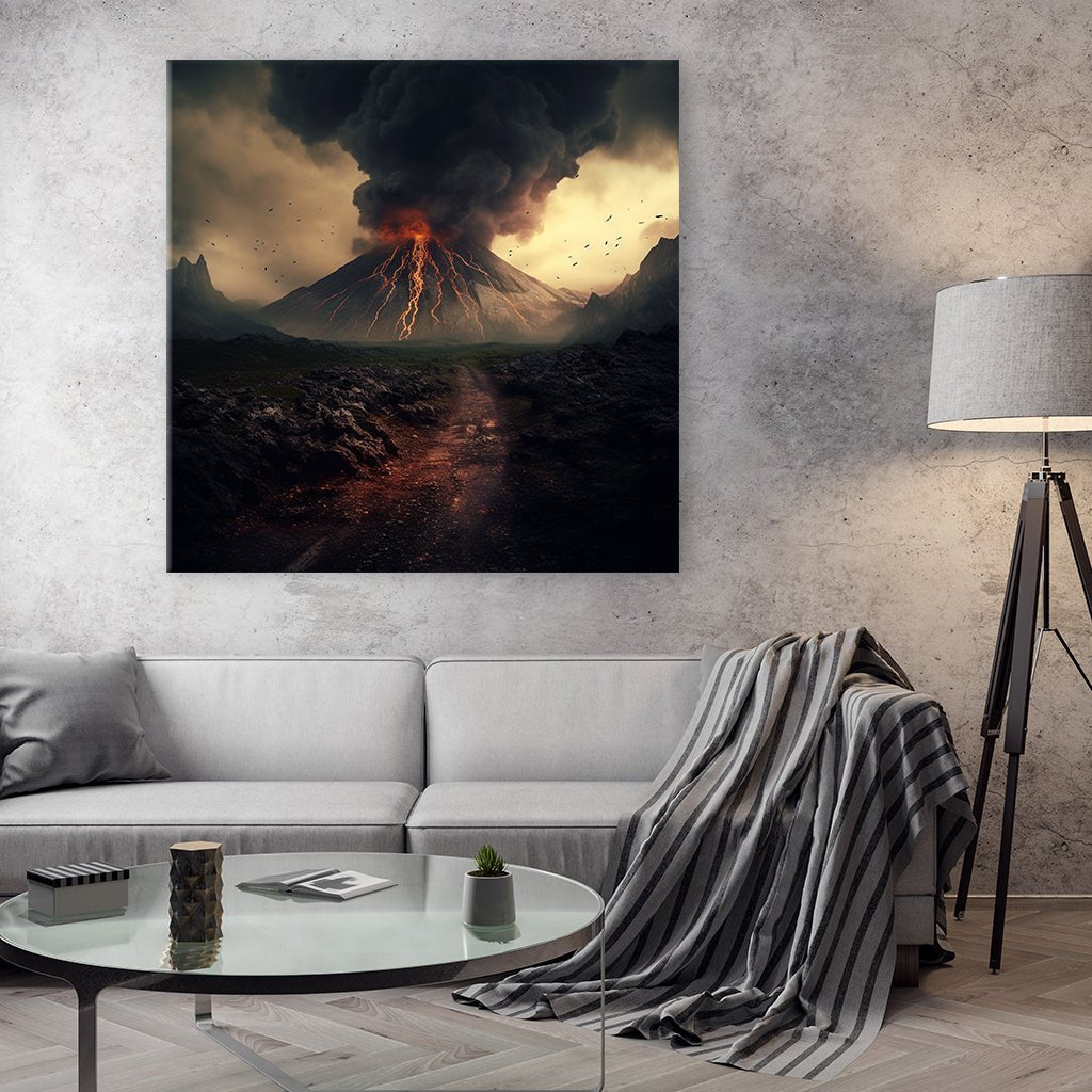 A mighty volcano rises majestically. Its crater spews black smoke, a sign of its unbridled power. Fiery embers blaze, lava finds its way down the volcano, a liquid avalanche of flaming orange. The force of nature is fascinating, a spectacular spectacle of fire and energy.