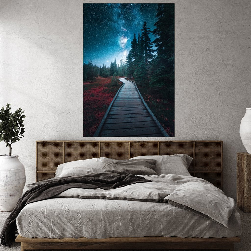 Follow the wooden path, even if it doesn't always seem like the right one. The sea of stars knows your way. Enjoy this picture and go on a journey in your living room, bedroom or even hallway.