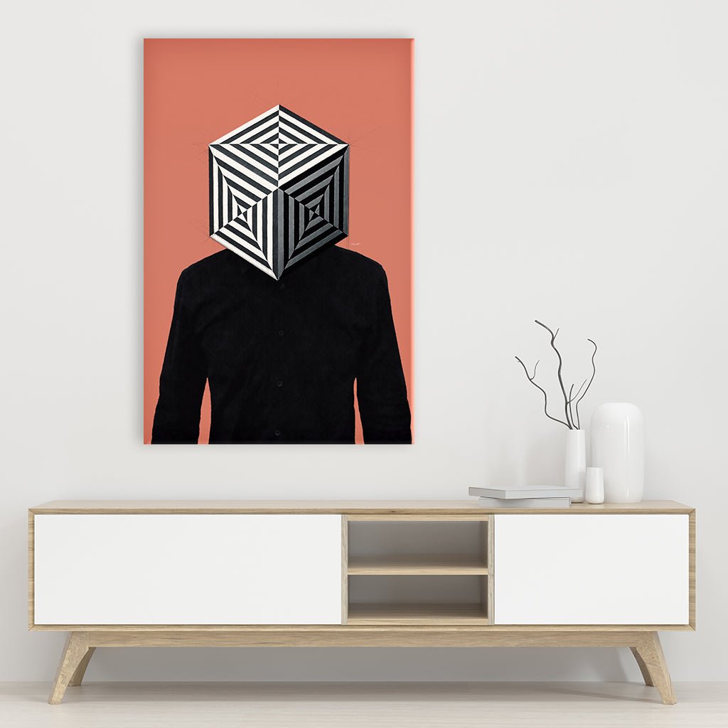 The portrait motif in a modern style is a work by the Greek artist Mr. Underdott. His works are a mixture of minimalism and surrealism. He creates environments with geometric shapes and elements from history to modernity.