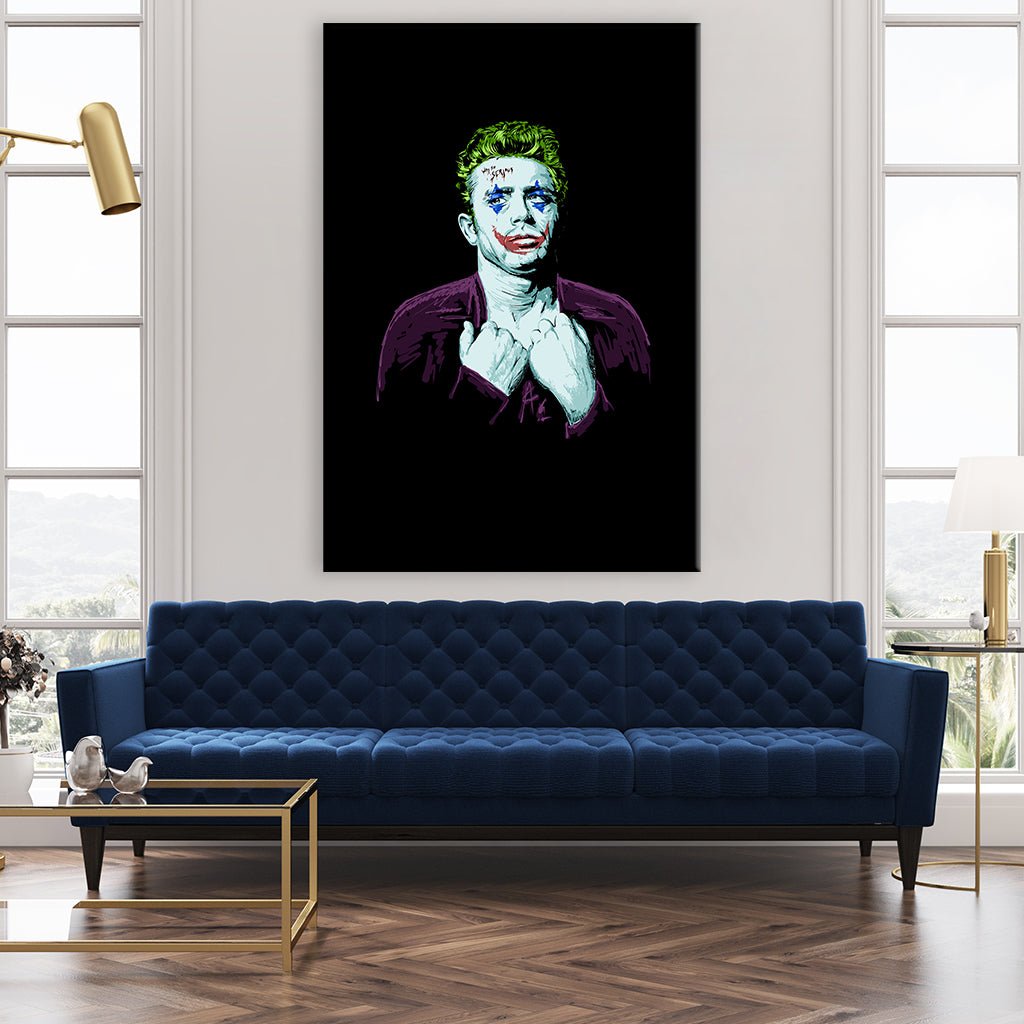 This motif shows the famous American theater and film actor James Byron Dean as the Joker and is therefore a special eye-catcher for your picture wall in the living room, bedroom or your loft apartment.