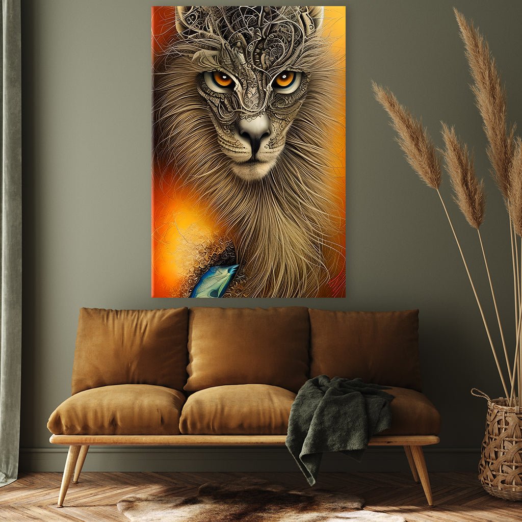 Let yourself be enchanted by the grace and elegance of a fantasy wild cat. The cat's fur has been artfully shaped and decorated with detailed ornaments, creating a harmonious fusion of nature and fantasy. The fantasy wildcat with its detailed and artfully designed fur is a symbol of strength, grace and mysticism.
