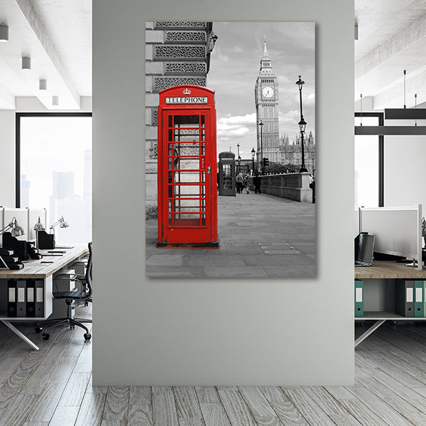 London is a very popular destination for city trips and it is also something special as a mural for your apartment. Our black and white motif shows an old English telephone box with the popular attraction Big Ben in the background.