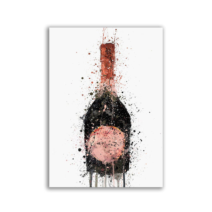 Our motif shows a champagne bottle in a modern abstract style with watercolors and splashes of color, it is implemented in a stylized manner and can be seen vaguely. Thanks to the white background and subtle colors, it fits perfectly into any room and many furnishing styles in your living room, kitchen or hallway.