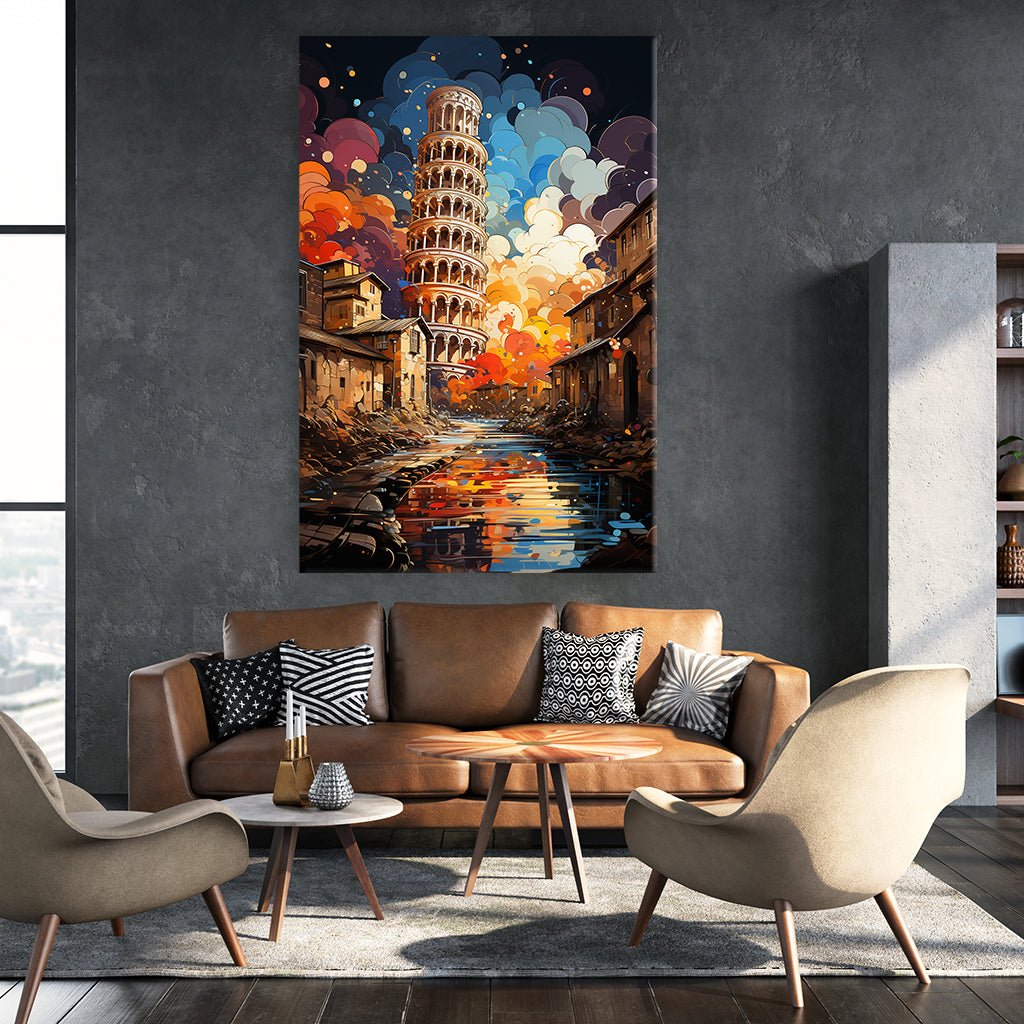 City motifs in a modern pop art style give a new dimension to iconic places like the Leaning Tower of Pisa. The colorful, yet muted color scheme makes the architecture stand out in a unique way. The interplay of colors captures the special energy of the city. This motif is perfect as an eye-catcher for the living room, bedroom or hallway.