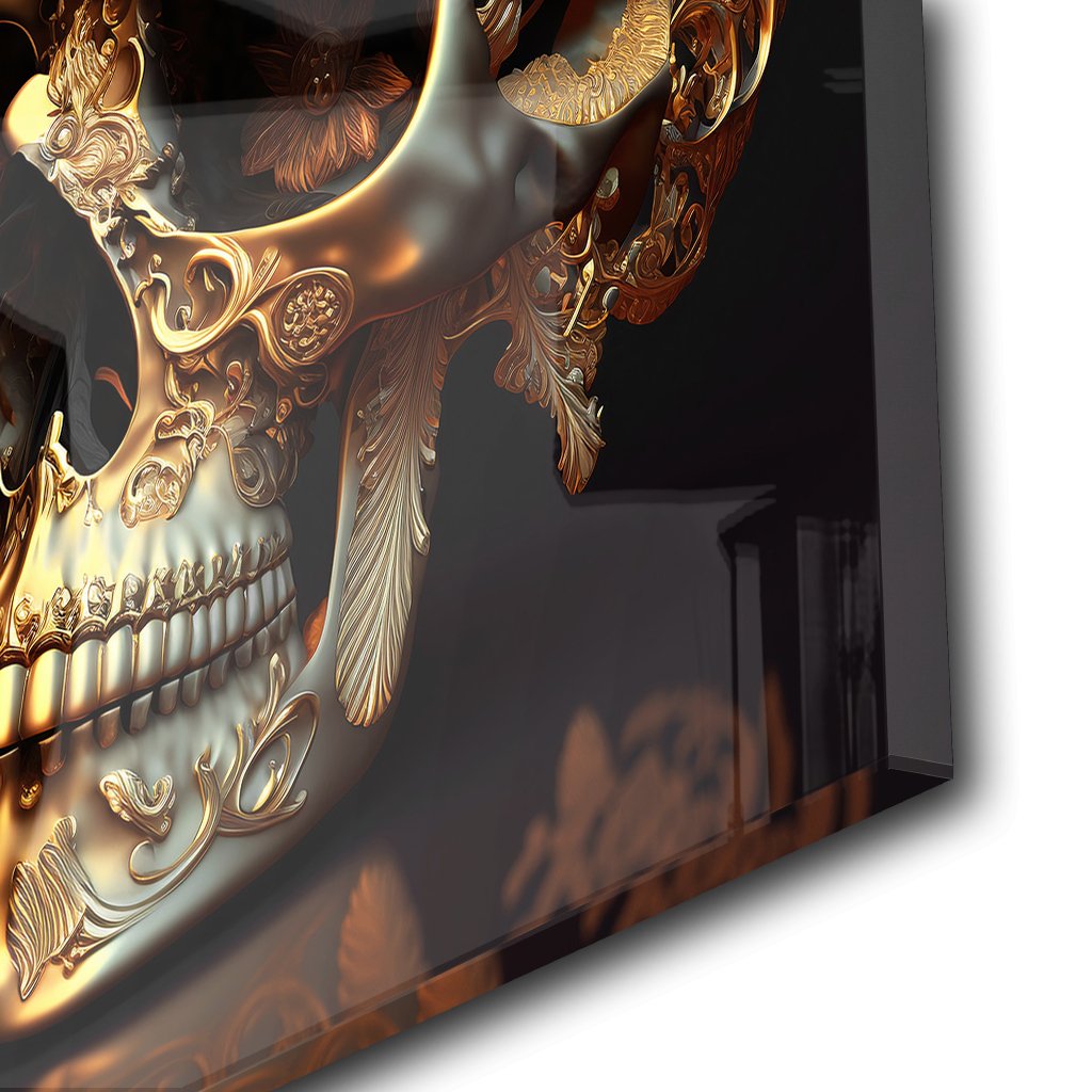 The motivational image shows a fascinating skull in gold, artfully decorated with floral patterns and ornaments. Above it is the inspiring motivational saying: "Mindset is what separates the best from the rest" - a reminder of the importance of inner attitude and determination, refined with silver leaf.