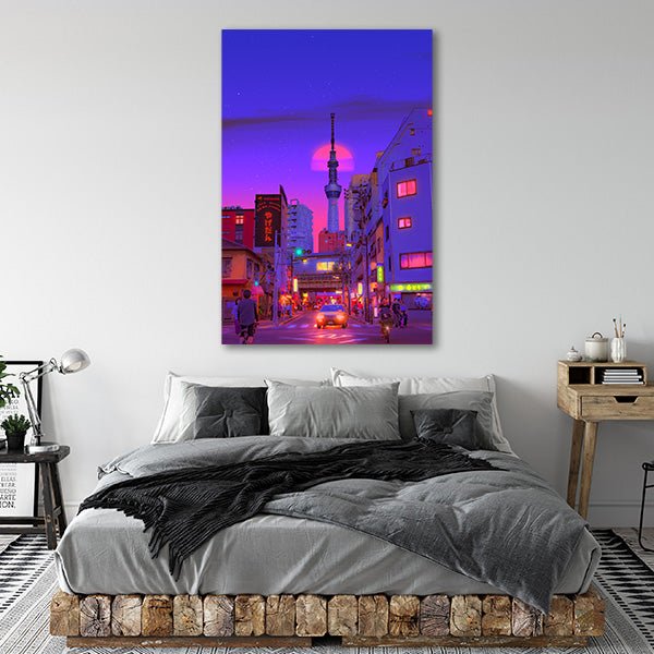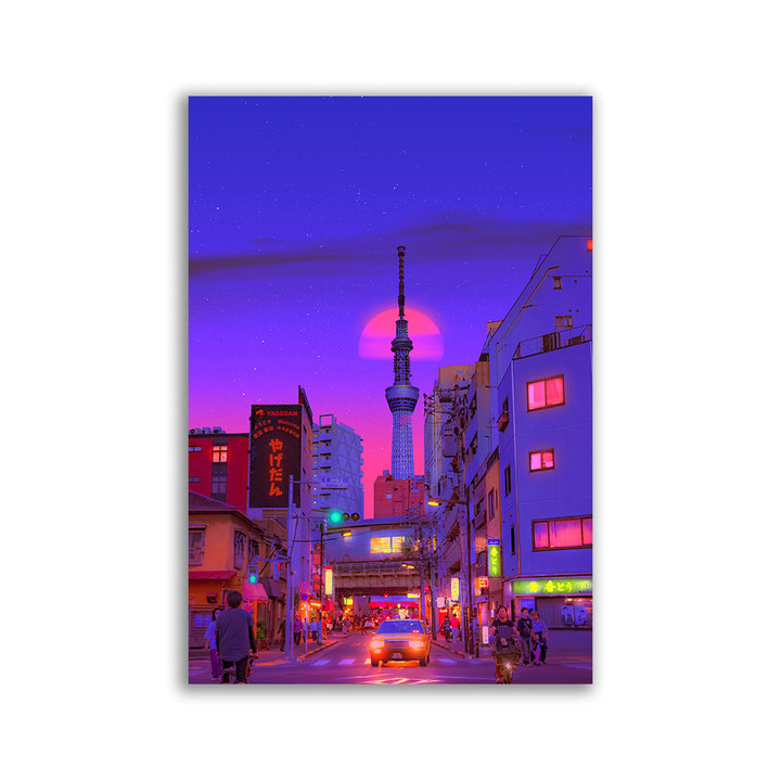 A hypnotic image unfolds, capturing the nighttime traffic through the streets of Tokyo. The bustling metropolis is bathed in a fascinating shade of purple that bathes the scene in a magical light.