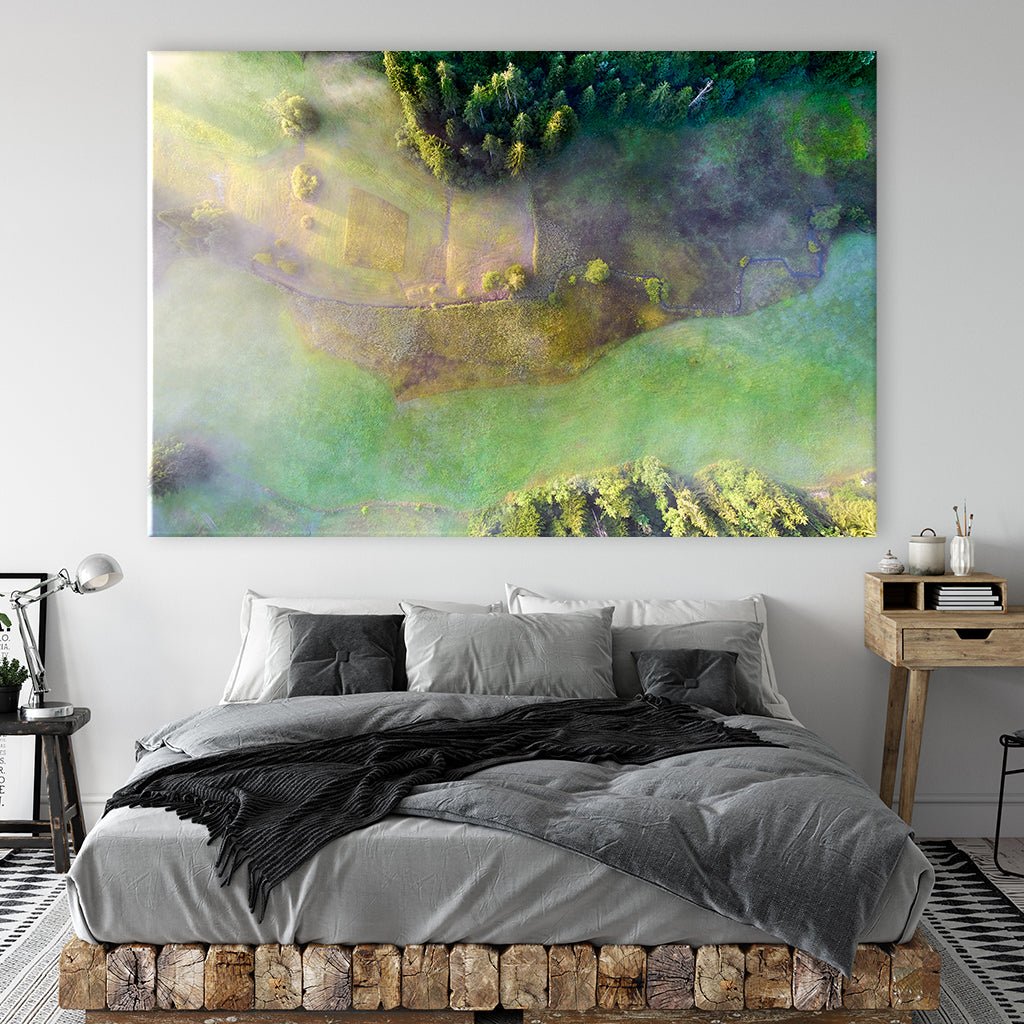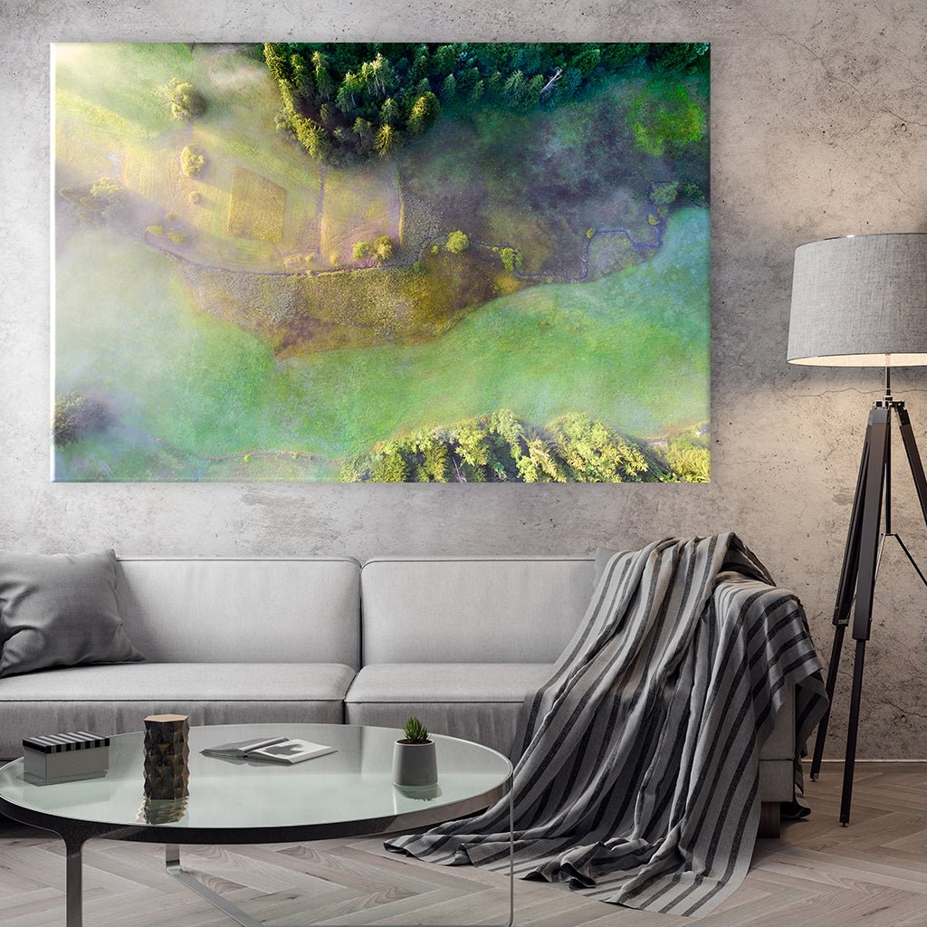 Fly over forests and fields and enjoy the breathtaking view from above. It is breathtakingly beautiful and a great eye-catcher for your gallery wall.