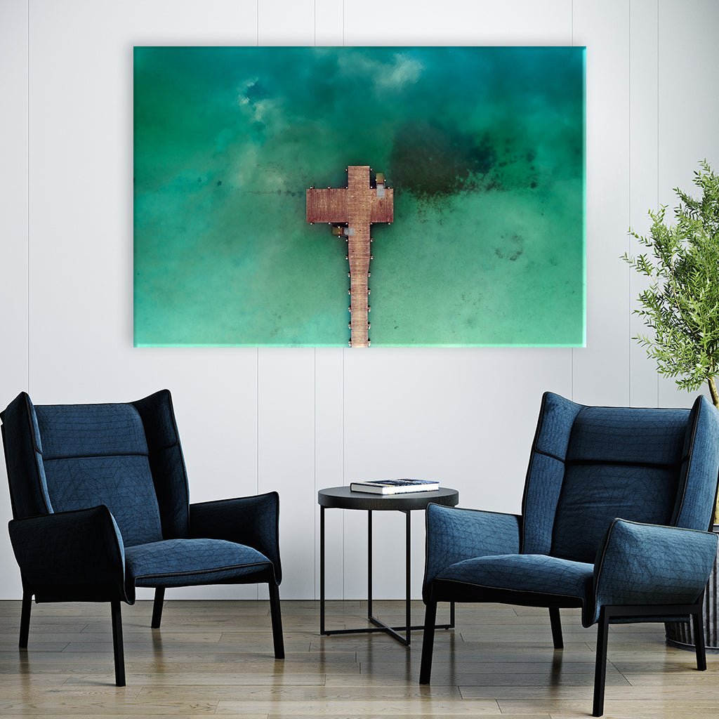 How about this great shot of a boat dock that extends far into the turquoise water of a lake? They look stunning and give your room that certain something.